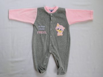 0-3m/3-6m/6-9m/9-12m χρωμα: γκρι μελαντζε με ροζ βελουδο 80% βαμβακερο 20% πολυεστερα